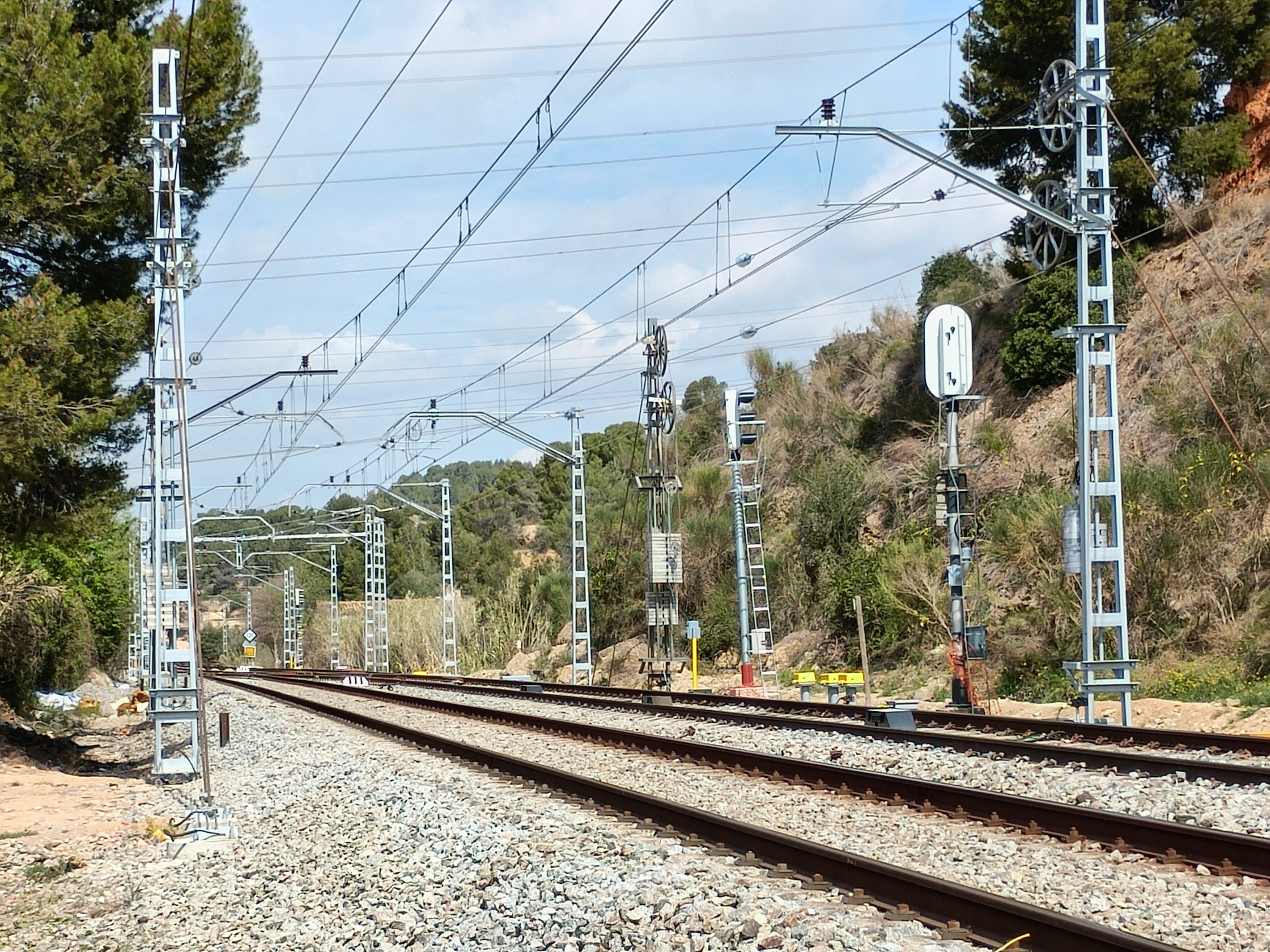 Des del pont, en direcció a Molins, ja no es veu la màquina apantalladora: els pilots ja estan fets en aquesta zona, com es pot veure a les fotos anteriors. En direcció a Barcelona, es poden veure les andanes provisionals. Es pot veure també com s'han fet obres per contenir les terres, per raons de seguretat, en tot aquest tram: